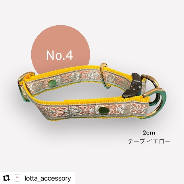 ★セミオーダー★SMサイズ(2センチ幅) No.12イエローに文字入りのジャガードリボンのダブルDカンカラー(首輪)