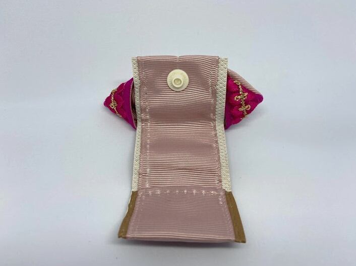 インド刺繍リボンの迷子札ケース モーヴ×ピンク