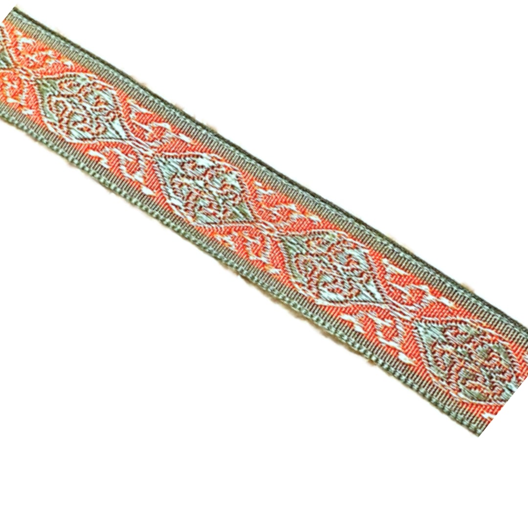 ★セミオーダー★SMサイズ No.4グリーンとオレンジベージュのジャガードリボンのダブルDカンカラー(首輪)