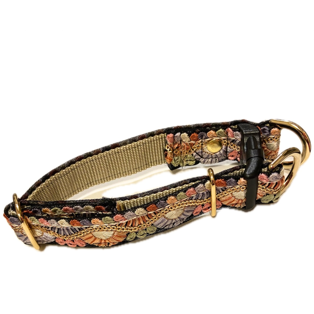 ⭐︎セミオーダー⭐︎Lサイズ(2.5センチ幅) No.28ブラックベースのカラフルな刺繍リボンのダブルDカンカラー(首輪)